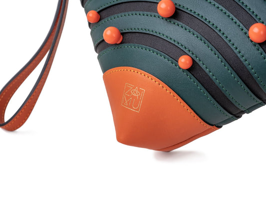 ZAI-MU FAN CLUTCH IN MOSS/ ORANGE